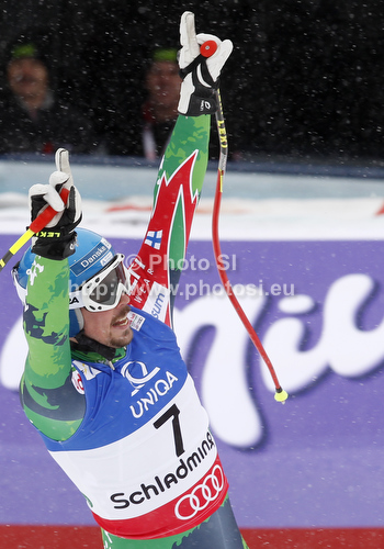 Schladming ,Austria - 09.02.2013 : Fifth placed Andreas Romar of Finland reacts in finish of men downhill race of FIS Alpine skiing World Championships in Schladming, Austria. Men downhill race of FIS Alpine skiing World championships Schladming 2013, was held in Schladming, Austria, on Saturday, 9th of February 2013. Photo by: Mitja Smid Bricelj