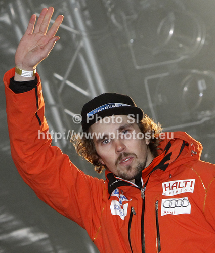 Schladming ,Austria - 09.02.2013 : Fifth placed Andreas Romar of Finland celebrates his success in men downhill race of FIS Alpine skiing World Championships in Schladming, Austria. Men downhill race of FIS Alpine skiing World championships Schladming 2013, was held in Schladming, Austria, on Saturday, 9th of February 2013. Photo by: Mitja Smid Bricelj