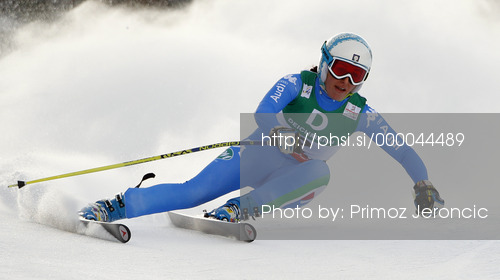 : Second placed Nadia Fanchini of Italy skiing in women downhill race of FIS Alpine skiing World Championships in Schladming, Austria. Women downhill race of FIS Alpine skiing World championships Schladming 2013, was held in Schladming, Austria, on Sunday, 10th of February 2013.