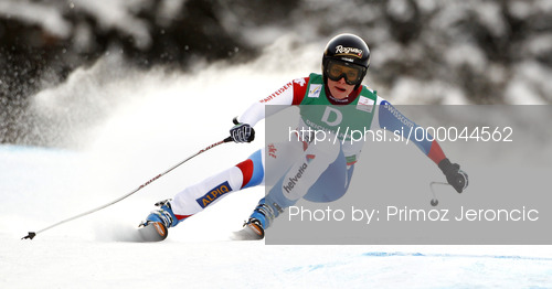 : Lara Gut of Switzerland skiing in women downhill race of FIS Alpine skiing World Championships in Schladming, Austria. Women downhill race of FIS Alpine skiing World championships Schladming 2013, was held in Schladming, Austria, on Sunday, 10th of February 2013.