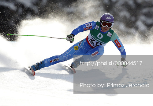 : Seventh placed Tina Maze of Slovenia skiing in women downhill race of FIS Alpine skiing World Championships in Schladming, Austria. Women downhill race of FIS Alpine skiing World championships Schladming 2013, was held in Schladming, Austria, on Sunday, 10th of February 2013.