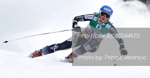 : Ragnhild Mowinckel of Norway skiing in women downhill race of FIS Alpine skiing World Championships in Schladming, Austria. Women downhill race of FIS Alpine skiing World championships Schladming 2013, was held in Schladming, Austria, on Sunday, 10th of February 2013.
