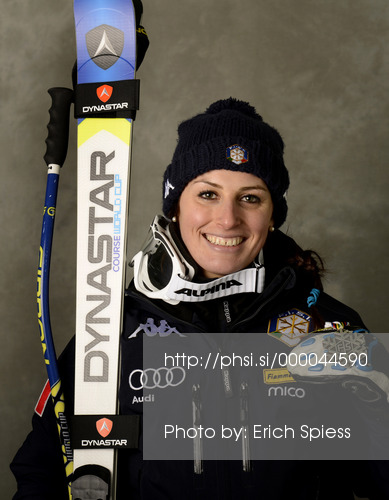 Schladming ,Austria - 10.02.2013 : Second placed Nadia Fanchini of Italy celebrates her medal won in women downhill race of FIS Alpine skiing World Championships in Schladming, Austria. Women downhill race of FIS Alpine skiing World championships Schladming 2013, was held in Schladming, Austria, on Sunday, 10th of February 2013. Photo by: Erich Spiess / pool / PhotoSI