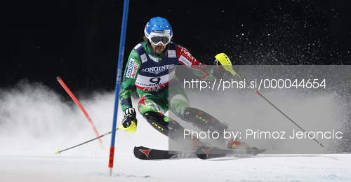 : Andreas Romar of Finland skiing in slalom of men super combined race of FIS Alpine skiing World Championships in Schladming, Austria. Slalom of men super combined race of FIS Alpine skiing World championships Schladming 2013, was held in Schladming, Austria, on Monday, 11th of February 2013.