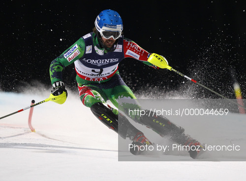 : Andreas Romar of Finland skiing in slalom of men super combined race of FIS Alpine skiing World Championships in Schladming, Austria. Slalom of men super combined race of FIS Alpine skiing World championships Schladming 2013, was held in Schladming, Austria, on Monday, 11th of February 2013.