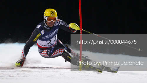 : Second placed Ivica Kostelic of Croatia skiing in slalom of men super combined race of FIS Alpine skiing World Championships in Schladming, Austria. Slalom of men super combined race of FIS Alpine skiing World championships Schladming 2013, was held in Schladming, Austria, on Monday, 11th of February 2013.