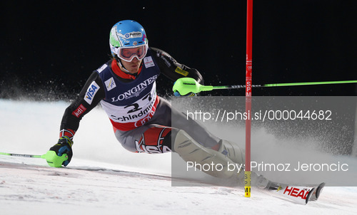 : Winner and new super combined World Champion Ted Ligety of USA skiing in slalom of men super combined race of FIS Alpine skiing World Championships in Schladming, Austria. Slalom of men super combined race of FIS Alpine skiing World championships Schladming 2013, was held in Schladming, Austria, on Monday, 11th of February 2013.