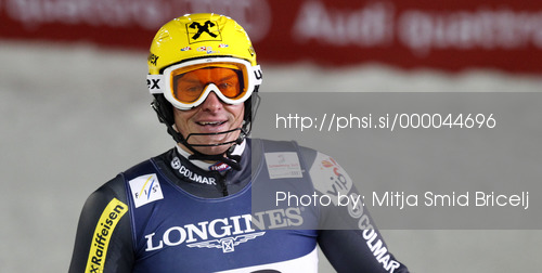 : Second placed Ivica Kostelic of Croatia reacts in finish of men super combined race of FIS Alpine skiing World Championships in Schladming, Austria. Slalom of men super combined race of FIS Alpine skiing World championships Schladming 2013, was held in Schladming, Austria, on Monday, 11th of February 2013.