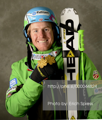 : Winner and new super combined World Champion Ted Ligety of USA celebrates his medal won in men super combined race of FIS Alpine skiing World Championships in Schladming, Austria. Slalom of men super combined race of FIS Alpine skiing World championships Schladming 2013, was held in Schladming, Austria, on Monday, 11th of February 2013.