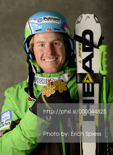 : Winner and new super combined World Champion Ted Ligety of USA celebrates his medal won in men super combined race of FIS Alpine skiing World Championships in Schladming, Austria. Slalom of men super combined race of FIS Alpine skiing World championships Schladming 2013, was held in Schladming, Austria, on Monday, 11th of February 2013.