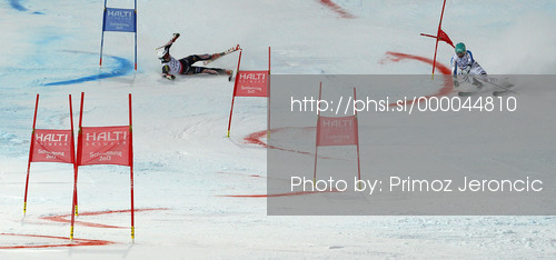 : Felix Neureuther of Germany (R) and Filip Zubcic of Croatia (L) skiing in Nations team event of FIS Alpine skiing World Championships in Schladming, Austria. Nations team event of FIS Alpine skiing World championships Schladming 2013, was held in Schladming, Austria, on Tuesday, 12th of February 2013.