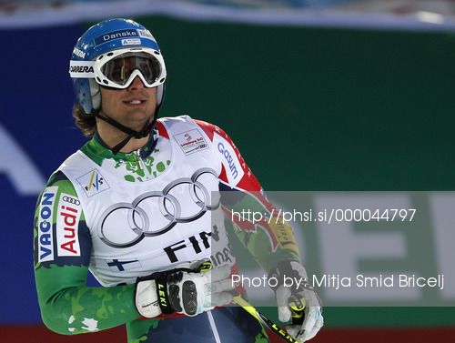 : Marcus Sandell of Finland reacts in finish of Nations team event of FIS Alpine skiing World Championships in Schladming, Austria. Nations team event of FIS Alpine skiing World championships Schladming 2013, was held in Schladming, Austria, on Tuesday, 12th of February 2013.