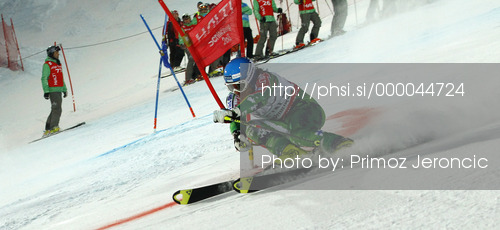 : Marcus Sandell of Finland skiing in team event race of FIS Alpine skiing World Championships in Schladming, Austria. Slalom of men super combined race of FIS Alpine skiing World championships Schladming 2013, was held in Schladming, Austria, on Tuesday, 12th of February 2013.