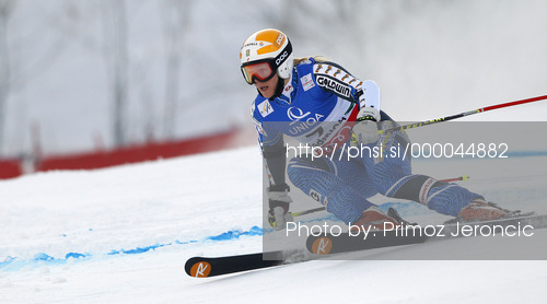 : Jessica Lindell-Vikarby of Sweden skiing in first run of women giant slalom race of FIS Alpine skiing World Championships in Schladming, Austria. Women giant slalom race of FIS Alpine skiing World championships Schladming 2013, was held in Schladming, Austria, on Thursday, 14th of February 2013.