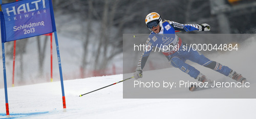 : Frida Hansdotter of Sweden skiing in first run of women giant slalom race of FIS Alpine skiing World Championships in Schladming, Austria. Women giant slalom race of FIS Alpine skiing World championships Schladming 2013, was held in Schladming, Austria, on Thursday, 14th of February 2013.