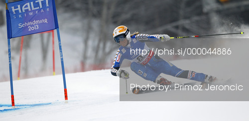 : Frida Hansdotter of Sweden skiing in first run of women giant slalom race of FIS Alpine skiing World Championships in Schladming, Austria. Women giant slalom race of FIS Alpine skiing World championships Schladming 2013, was held in Schladming, Austria, on Thursday, 14th of February 2013.
