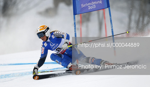 : Frida Hansdotter of Sweden skiing in first run of women giant slalom race of FIS Alpine skiing World Championships in Schladming, Austria. Women giant slalom race of FIS Alpine skiing World championships Schladming 2013, was held in Schladming, Austria, on Thursday, 14th of February 2013.