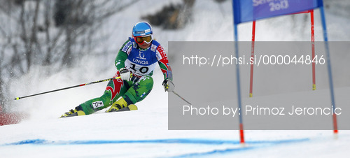 : Tanja Poutiainen of Finland skiing in first run of women giant slalom race of FIS Alpine skiing World Championships in Schladming, Austria. Women giant slalom race of FIS Alpine skiing World championships Schladming 2013, was held in Schladming, Austria, on Thursday, 14th of February 2013.