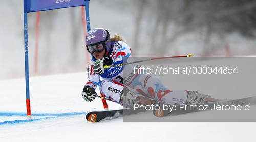 : Tessa Worley of France skiing in first run of women giant slalom race of FIS Alpine skiing World Championships in Schladming, Austria. Women giant slalom race of FIS Alpine skiing World championships Schladming 2013, was held in Schladming, Austria, on Thursday, 14th of February 2013.