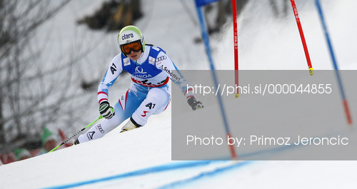 : Anna Fenninger of Austria skiing in first run of women giant slalom race of FIS Alpine skiing World Championships in Schladming, Austria. Women giant slalom race of FIS Alpine skiing World championships Schladming 2013, was held in Schladming, Austria, on Thursday, 14th of February 2013.