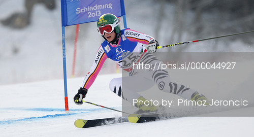 : Lena Duerr of Germany skiing in first run of women giant slalom race of FIS Alpine skiing World Championships in Schladming, Austria. Women giant slalom race of FIS Alpine skiing World championships Schladming 2013, was held in Schladming, Austria, on Thursday, 14th of February 2013.