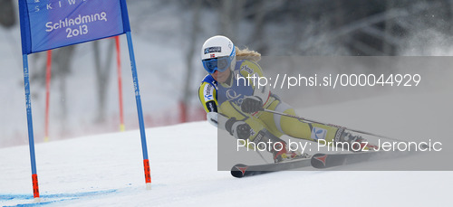 : Lotte Smiseth Sejersted of Norway skiing in first run of women giant slalom race of FIS Alpine skiing World Championships in Schladming, Austria. Women giant slalom race of FIS Alpine skiing World championships Schladming 2013, was held in Schladming, Austria, on Thursday, 14th of February 2013.