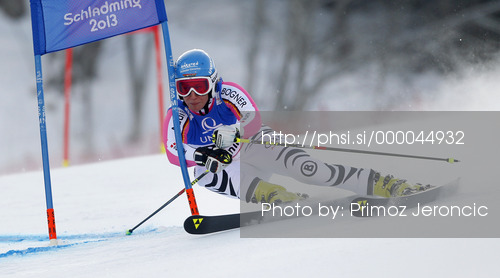 : Veronique Hronek of Germany skiing in first run of women giant slalom race of FIS Alpine skiing World Championships in Schladming, Austria. Women giant slalom race of FIS Alpine skiing World championships Schladming 2013, was held in Schladming, Austria, on Thursday, 14th of February 2013.