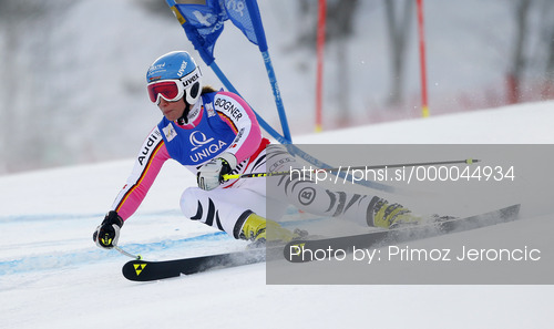 : Veronique Hronek of Germany skiing in first run of women giant slalom race of FIS Alpine skiing World Championships in Schladming, Austria. Women giant slalom race of FIS Alpine skiing World championships Schladming 2013, was held in Schladming, Austria, on Thursday, 14th of February 2013.