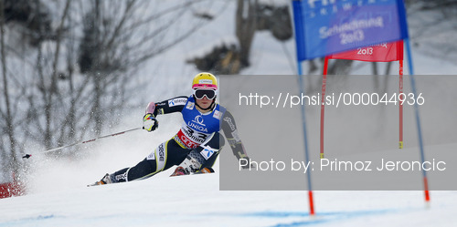 : Mona Loeseth of Norway skiing in first run of women giant slalom race of FIS Alpine skiing World Championships in Schladming, Austria. Women giant slalom race of FIS Alpine skiing World championships Schladming 2013, was held in Schladming, Austria, on Thursday, 14th of February 2013.