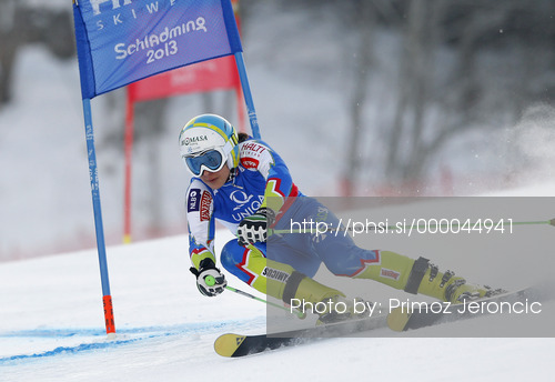 : Tina Robnik of Slovenia skiing in first run of women giant slalom race of FIS Alpine skiing World Championships in Schladming, Austria. Women giant slalom race of FIS Alpine skiing World championships Schladming 2013, was held in Schladming, Austria, on Thursday, 14th of February 2013.