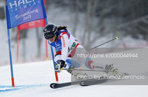 : Wendy Holdener of Switzerland skiing in first run of women giant slalom race of FIS Alpine skiing World Championships in Schladming, Austria. Women giant slalom race of FIS Alpine skiing World championships Schladming 2013, was held in Schladming, Austria, on Thursday, 14th of February 2013.