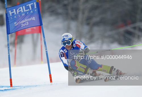 : Ilka Stuhec of Slovenia skiing in first run of women giant slalom race of FIS Alpine skiing World Championships in Schladming, Austria. Women giant slalom race of FIS Alpine skiing World championships Schladming 2013, was held in Schladming, Austria, on Thursday, 14th of February 2013.