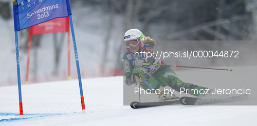 : Nina Halme of Finland skiing in first run of women giant slalom race of FIS Alpine skiing World Championships in Schladming, Austria. Women giant slalom race of FIS Alpine skiing World championships Schladming 2013, was held in Schladming, Austria, on Thursday, 14th of February 2013.
