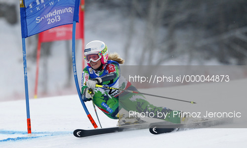 : Nina Halme of Finland skiing in first run of women giant slalom race of FIS Alpine skiing World Championships in Schladming, Austria. Women giant slalom race of FIS Alpine skiing World championships Schladming 2013, was held in Schladming, Austria, on Thursday, 14th of February 2013.