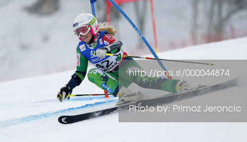 : Nina Halme of Finland skiing in first run of women giant slalom race of FIS Alpine skiing World Championships in Schladming, Austria. Women giant slalom race of FIS Alpine skiing World championships Schladming 2013, was held in Schladming, Austria, on Thursday, 14th of February 2013.
