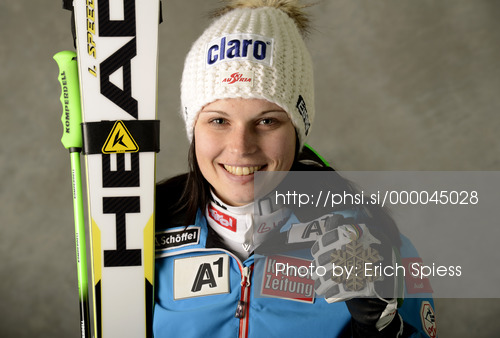 : Third placed Anna Fenninger of Austria celebrates her medal won in women giant slalom race of FIS Alpine skiing World Championships in Schladming, Austria. Women giant slalom race of FIS Alpine skiing World championships Schladming 2013, was held in Schladming, Austria, on Thursday, 14th of February 2013.
