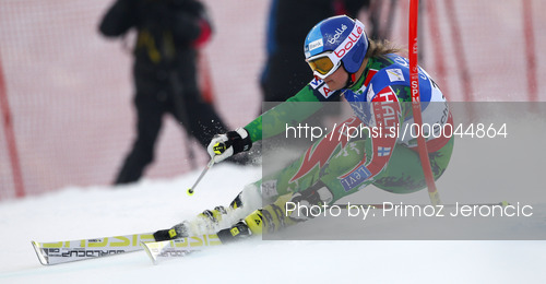 : Tanja Poutiainen of Finland skiing in first run of women giant slalom race of FIS Alpine skiing World Championships in Schladming, Austria. Women giant slalom race of FIS Alpine skiing World championships Schladming 2013, was held in Schladming, Austria, on Thursday, 14th of February 2013.