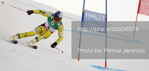 : Aksel Lund Svindal of Norway skiing in first run of men giant slalom race of FIS Alpine skiing World Championships in Schladming, Austria. Men giant slalom race of FIS Alpine skiing World championships Schladming 2013, was held in Schladming, Austria, on Friday, 15th of February 2013.