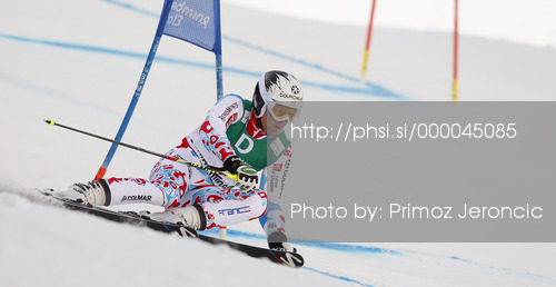 : Alexis Pinturault of France skiing in first run of men giant slalom race of FIS Alpine skiing World Championships in Schladming, Austria. Men giant slalom race of FIS Alpine skiing World championships Schladming 2013, was held in Schladming, Austria, on Friday, 15th of February 2013.