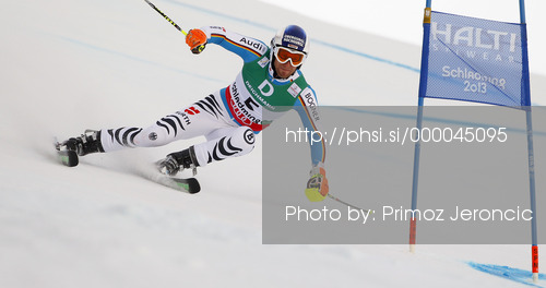 : Fritz Dopfer of Germany skiing in first run of men giant slalom race of FIS Alpine skiing World Championships in Schladming, Austria. Men giant slalom race of FIS Alpine skiing World championships Schladming 2013, was held in Schladming, Austria, on Friday, 15th of February 2013.