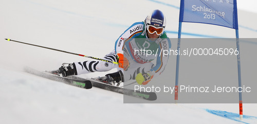 : Fritz Dopfer of Germany skiing in first run of men giant slalom race of FIS Alpine skiing World Championships in Schladming, Austria. Men giant slalom race of FIS Alpine skiing World championships Schladming 2013, was held in Schladming, Austria, on Friday, 15th of February 2013.