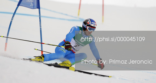 : Manfred Moelgg of Italy skiing in first run of men giant slalom race of FIS Alpine skiing World Championships in Schladming, Austria. Men giant slalom race of FIS Alpine skiing World championships Schladming 2013, was held in Schladming, Austria, on Friday, 15th of February 2013.