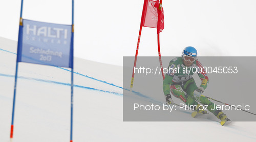 : Marcus Sandell of Finland skiing in first run of men giant slalom race of FIS Alpine skiing World Championships in Schladming, Austria. Men giant slalom race of FIS Alpine skiing World championships Schladming 2013, was held in Schladming, Austria, on Friday, 15th of February 2013.