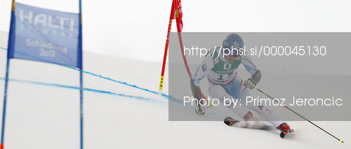 : Benjamin Raich of Austria skiing in first run of men giant slalom race of FIS Alpine skiing World Championships in Schladming, Austria. Men giant slalom race of FIS Alpine skiing World championships Schladming 2013, was held in Schladming, Austria, on Friday, 15th of February 2013.
