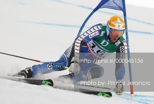 : Andre Myhrer of Sweden skiing in first run of men giant slalom race of FIS Alpine skiing World Championships in Schladming, Austria. Men giant slalom race of FIS Alpine skiing World championships Schladming 2013, was held in Schladming, Austria, on Friday, 15th of February 2013.