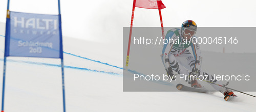 : Stefan Luitz of Germany skiing in first run of men giant slalom race of FIS Alpine skiing World Championships in Schladming, Austria. Men giant slalom race of FIS Alpine skiing World championships Schladming 2013, was held in Schladming, Austria, on Friday, 15th of February 2013.