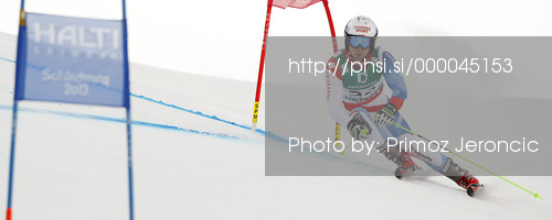 : Carlo Janka of Switzerland skiing in first run of men giant slalom race of FIS Alpine skiing World Championships in Schladming, Austria. Men giant slalom race of FIS Alpine skiing World championships Schladming 2013, was held in Schladming, Austria, on Friday, 15th of February 2013.