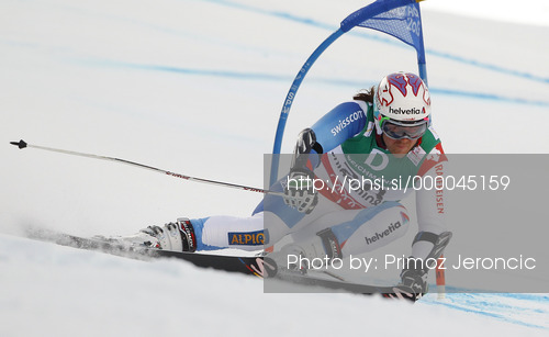 : Marc Berthod of Switzerland skiing in first run of men giant slalom race of FIS Alpine skiing World Championships in Schladming, Austria. Men giant slalom race of FIS Alpine skiing World championships Schladming 2013, was held in Schladming, Austria, on Friday, 15th of February 2013.