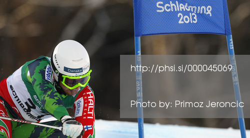 : Samu Torsti of Finland skiing in first run of men giant slalom race of FIS Alpine skiing World Championships in Schladming, Austria. Men giant slalom race of FIS Alpine skiing World championships Schladming 2013, was held in Schladming, Austria, on Friday, 15th of February 2013.