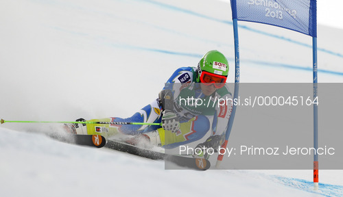 : Zan Kranjec of Slovenia skiing in first run of men giant slalom race of FIS Alpine skiing World Championships in Schladming, Austria. Men giant slalom race of FIS Alpine skiing World championships Schladming 2013, was held in Schladming, Austria, on Friday, 15th of February 2013.